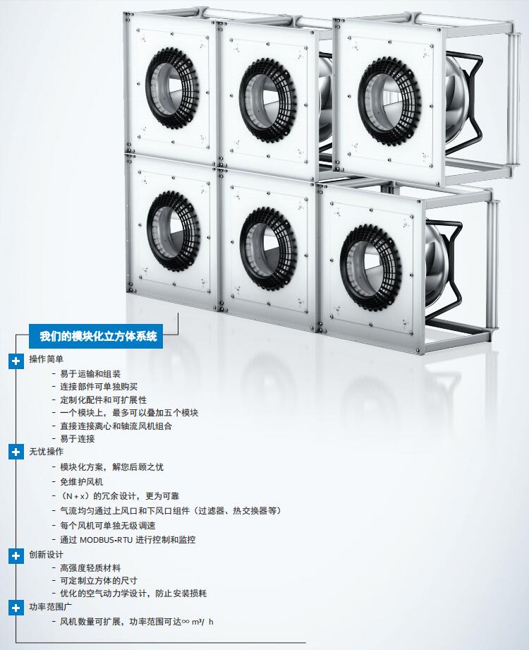 在此次上海舉辦的“2021中國制冷展”中,Ebmpapst RadiPac即插即用型風(fēng)機組合安裝,提供的FanGrid風(fēng)墻解決方案亮相展會。它采用模塊化設(shè)計,安裝便捷、節(jié)約空間,大幅度提升了系統(tǒng)的可靠性。