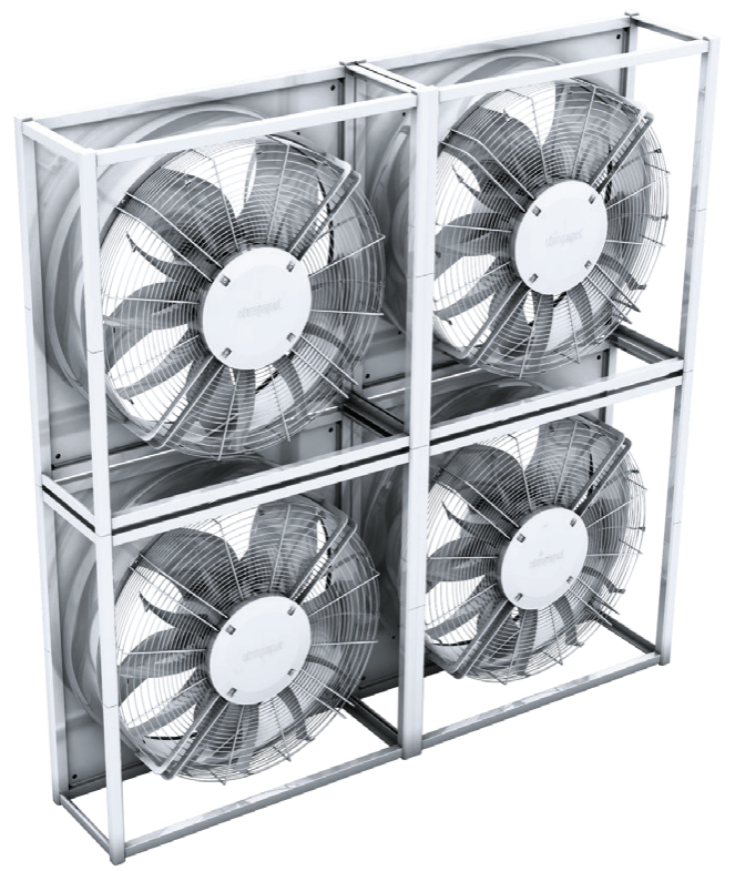 為了在通風(fēng)技術(shù)中實現(xiàn)更高的空氣性能,我們擺脫了使用單個大型風(fēng)機提供高風(fēng)量的方案,而日益傾向于將多臺風(fēng)機進行組合安裝,形成智能靈活的風(fēng)墻解決方案。