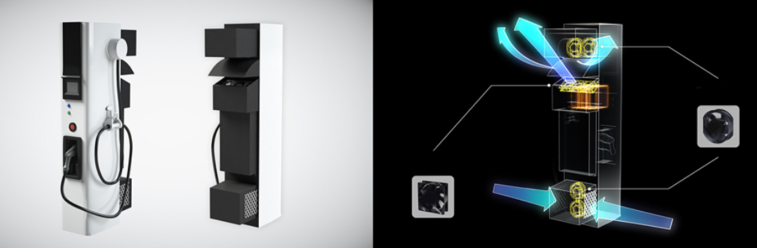 相比于其他電源,充電樁的系統(tǒng)散熱量相對更多,對系統(tǒng)熱設(shè)計要求極為嚴(yán)格。因此需要效率更高,散熱能力更強(qiáng),具有優(yōu)秀的防水防塵能力的散熱風(fēng)扇。