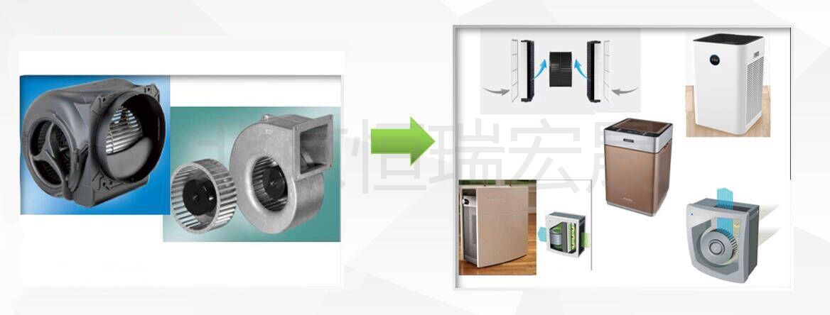 利用前向離心風機方案在空氣凈化產(chǎn)品中是一個非常好的應用。雙進風前向離心風機,它具有風量大、噪音低的特點。結構比后向離心風機復雜,需帶蝸殼運行,成本也相對較高。
