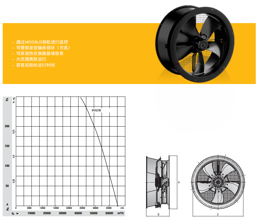 W3G Z50憑借其高效的空氣動力學(xué)特性、集成的驅(qū)動器和接口,非常適合高效率的應(yīng)用需求。搭配有帶集成擴散器的雙法蘭外殼,使其成為軸流風(fēng)機靜音運行的杰出典范。