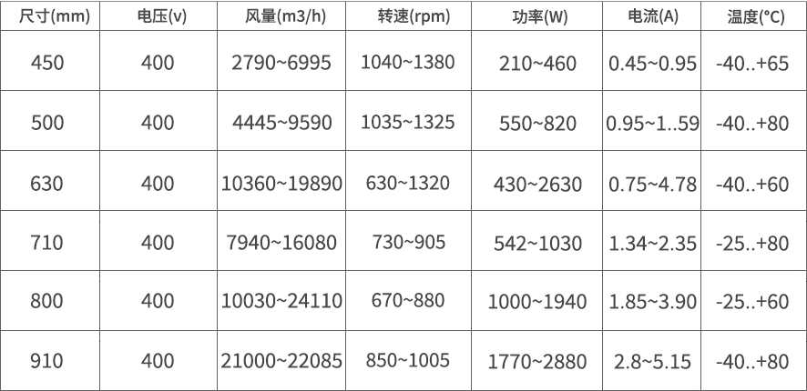 熱泵室外機常用AC/EC風(fēng)機系列: