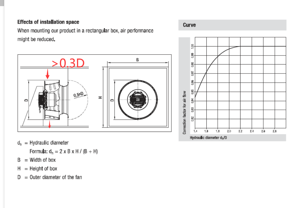 所以對(duì)徑向安裝要求是:安裝空間的直徑,不能小于風(fēng)機(jī)直徑,