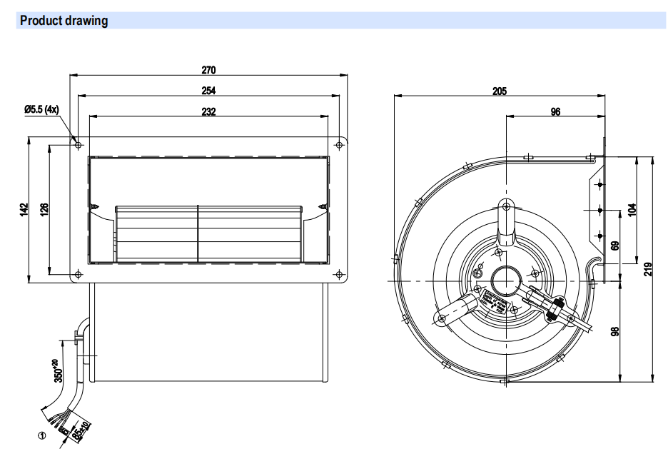 R1G146-AA07-52風(fēng)量:470m³/h 電壓:24v 電流:5A 功率:100W 轉(zhuǎn)速:2200r/min