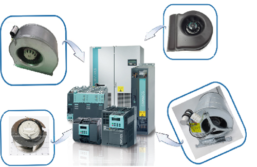 變頻器底部的大風(fēng)扇是用來給變頻器的IGBT等大功率原件散熱的,小風(fēng)扇是用來給CPU板、驅(qū)動(dòng)板、電源板等電子部分散熱。Ebmpapst離心風(fēng)機(jī)具有極低的噪音水平和高功率密度,它們可以滿足狹小空間及大風(fēng)量的需求,葉輪是根據(jù)空氣動(dòng)力學(xué)和幾何要求設(shè)計(jì)的。為了獲得更佳效率,除了電壓控制的異步電動(dòng)機(jī)外,還使用了高性能的Green Tech EC電動(dòng)機(jī)。兩種驅(qū)動(dòng)器類型均可在整個(gè)功率范圍內(nèi)使用。