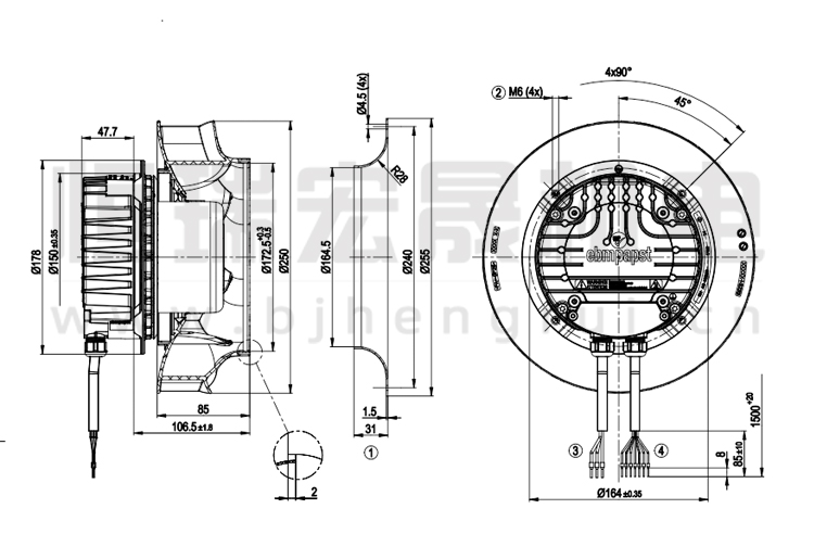 德國ebmpapst R3G250-RR09-P1離心風機結構圖