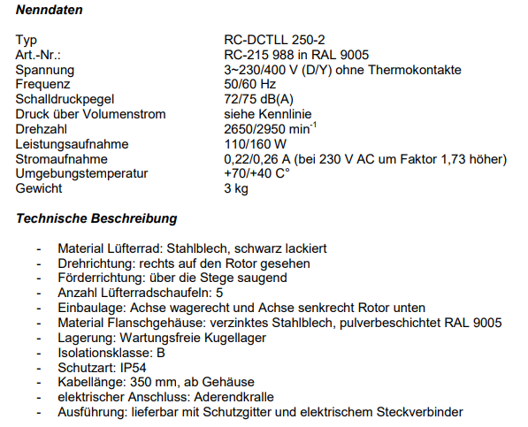 RC-DCTLL 250-2 230/400 V軸流風機,適用于通風散熱制冷,能源技術行業(yè)