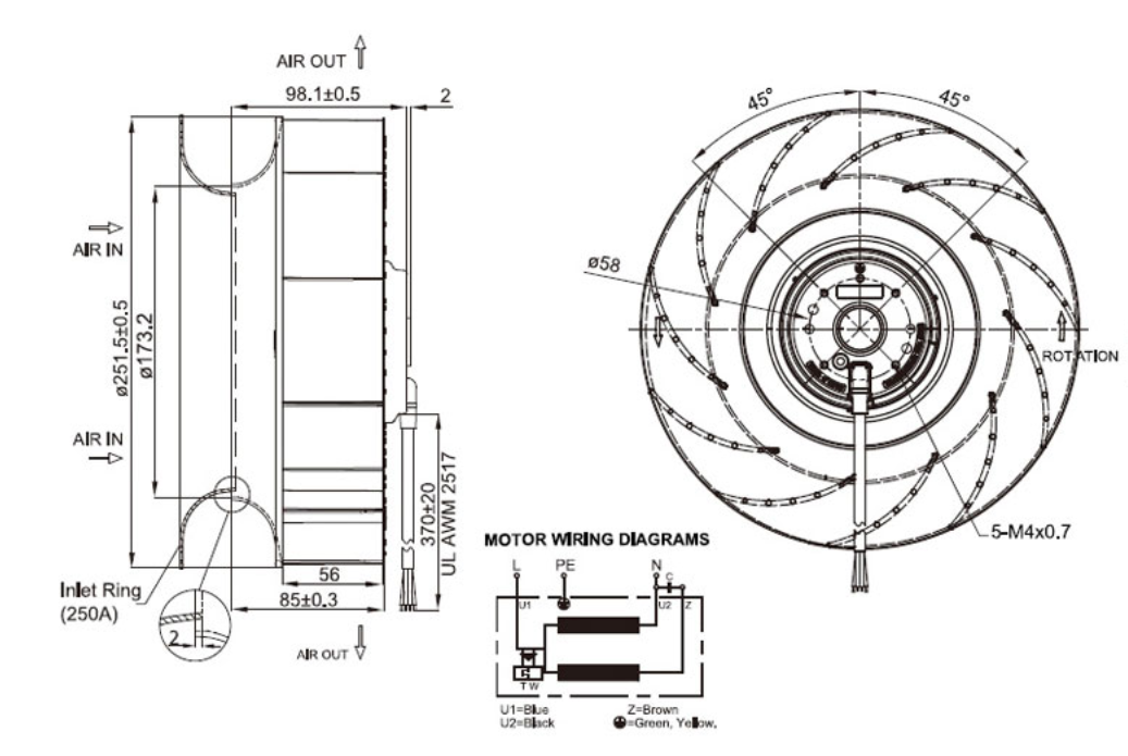 離心扇氣流入風口與出風口成90度的結(jié)構(gòu)設(shè)計, 適合需要特殊應用的工業(yè)化用戶