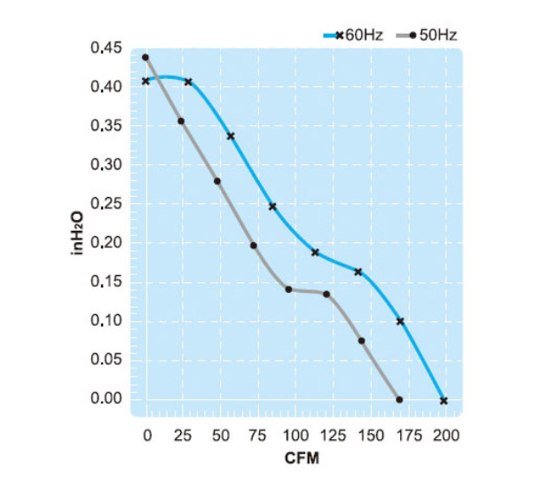 Maximum Pressure 0.67/0.75 InchH2O 0.67/0.75 InchH2O
