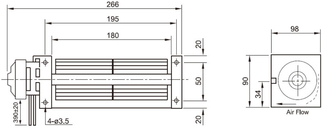 橫流風(fēng)扇特殊的出風(fēng)面窄而長(zhǎng)的結(jié)構(gòu)設(shè)計(jì), 特別適合安裝在扁平式的設(shè)備上