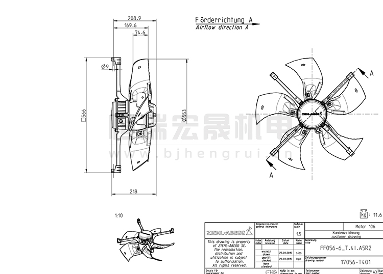 施樂百ziehl-abegg 軸流風機 FF056-6DT.4I.A5R2