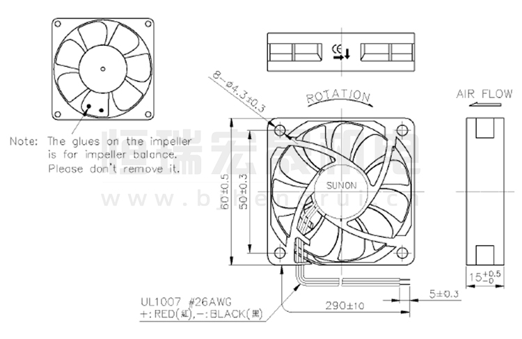 SUNON建準(zhǔn)風(fēng)機(jī) 60*60*15mm MF60152VX-1000C-A99